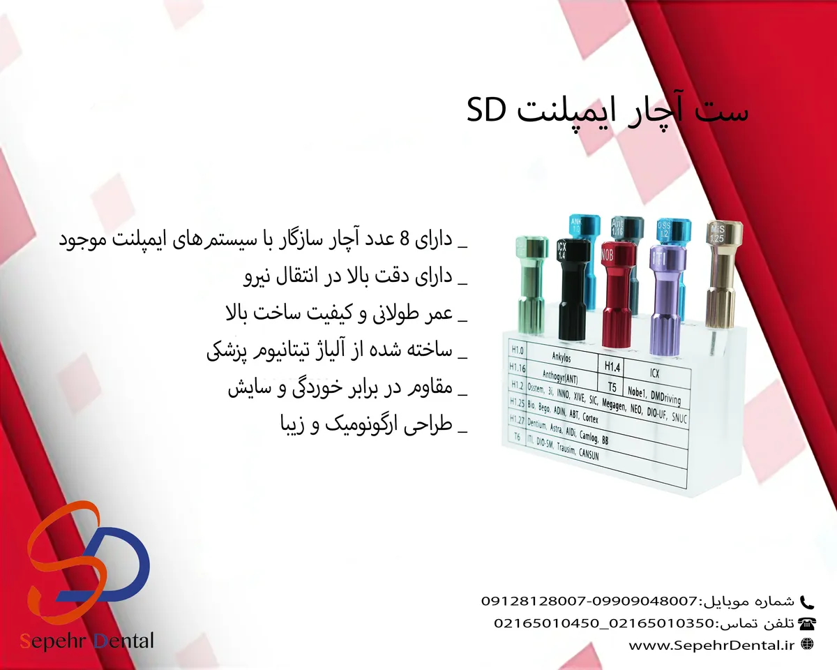 _ دارای 8 عدد آچار سازگار با سیستم های ایمپلنت موجود