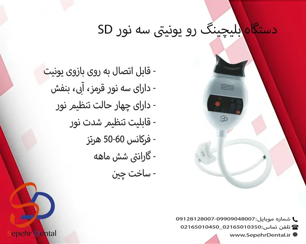 دستگاه بلیچینگ رو یونیتی سه نور SD برای نصب روی بازوی یونیت دندانپزشکی طراحی شده است